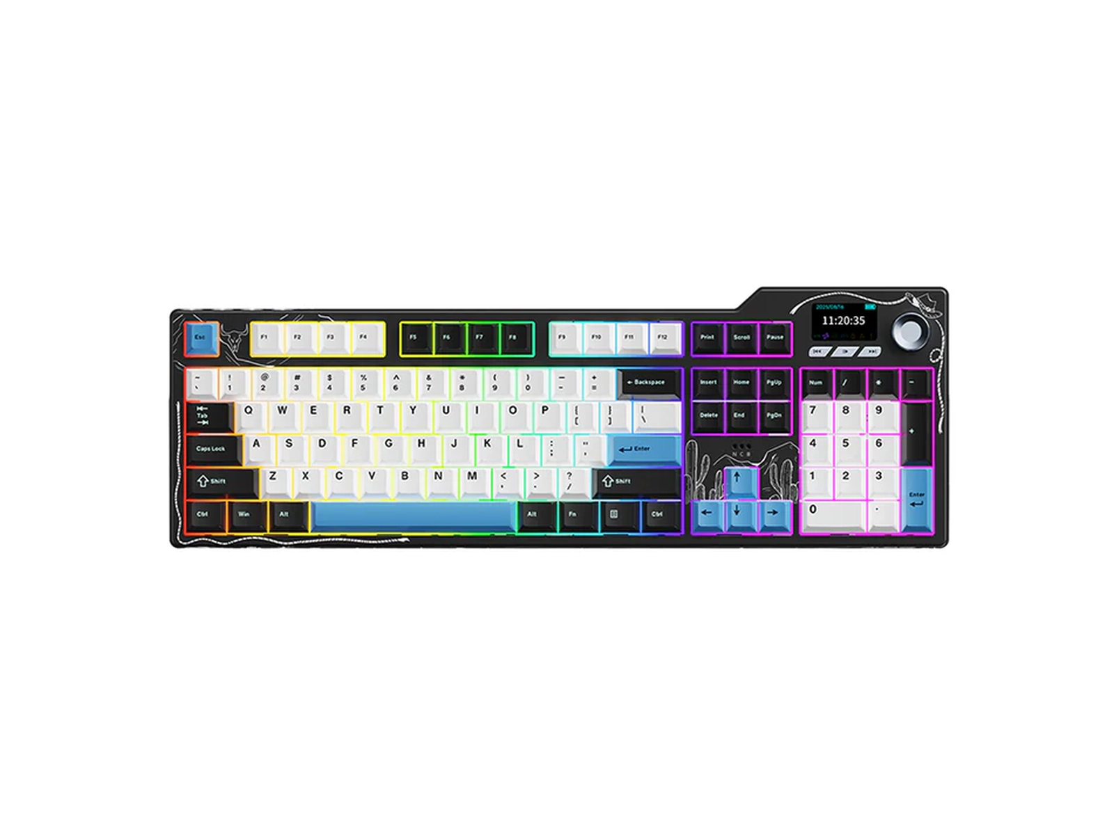 Experience a new level of keyboard interaction with the built-in 1.14-inch TFT color screen. This high-brightness display provides real-time updates on your systemâs status, including battery life, active connection mode, and current volume levels. You can even personalize your desk aesthetic by uploading custom color GIF animations, making your keyboard a unique centerpiece of your setup.