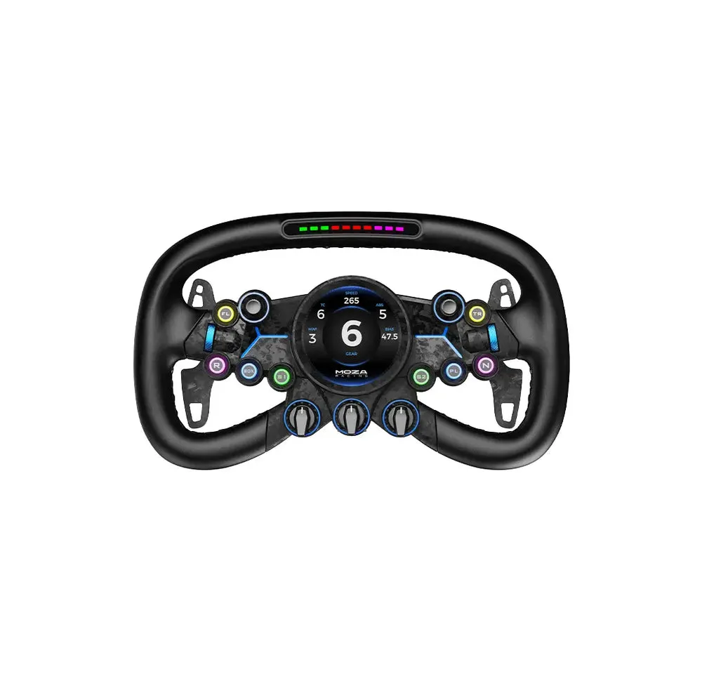 The MOZA Vision GS Gaming Wheel delivers immersive control with a sharp HD display, high-speed processing, and race-ready input versatility — all in a premium aluminum-carbon build.
