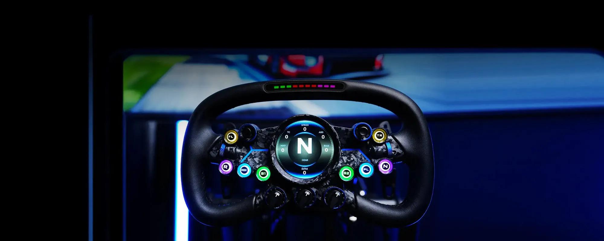 - Dual-clutch magnetic paddles, top-mounted RGB RPM indicators (16.7M colors).