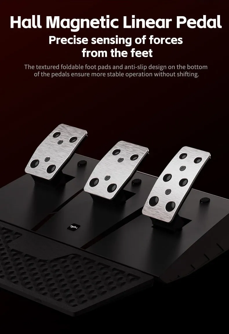- Pedal Technology: Hall Effect magnetic induction linear pedals