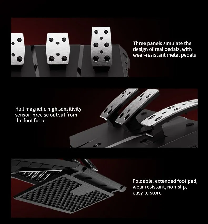 - Included Accessories: 3-Pedal Set (Throttle, Brake, Clutch), 6+1 H-Pattern Shifter